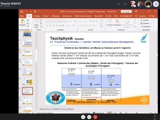 Dafür war die Resonanz zur DTSA**/***-Theorie per Skype umso größer. 16 Anwärter wurden von Steven und Ines in die Theorie der Tauchphysik eingeführt. Das war recht knackig und sie haben eine Menge Übungsaufgaben zur Vertiefung bekommen. Am Mittwoch ist Gelegenheit Fragen zu stellen.