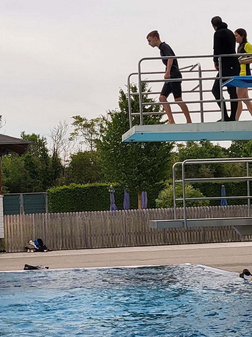 In der ersten Stunde von 18 bis 19 Uhr wurde für uns das Sprungbeckenabgesperrt. Zum Erwärmen haben wir erst einmal ein paar intensivere Übungen trainiert, denn die Wassertemperatur lag bei erfrischenden 21°C. Aber wir haben die Hoffnung, dass es sich im Laufe des Sommers erwärmt. Wir haben natürlich den Sprungturm rege genutzt und alle sind mit viel Spaß gesprungen.