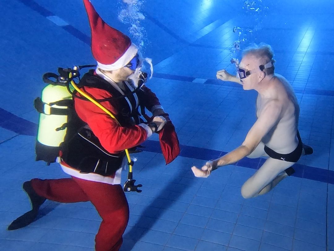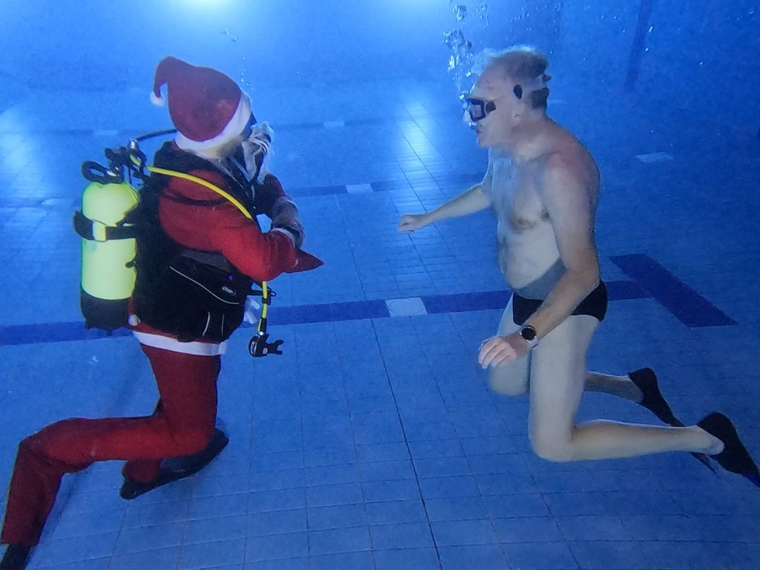 hat er uns auch in diesem Jahr wieder beim letzten Training vor Weihnachten in der Rheinwelle beehrt um die fleißigen Mitglieder zu belohnen, die regelmäßig ins Training kommen.