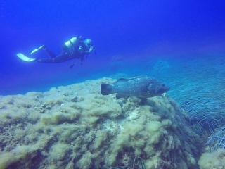 Die zweite Tauchbasis heißt Hippocampe und liegt bei Porto Vecchio. Dort gibt es ein Naturschutzgebiet (parc naturelle) und dadurch für das Mittelmeer auch viele Fische. Highlight sind einige sehr große Zackies. Die Tauchbasis wird von zwei Deutschen geleitet und liegt auf einem FKK-Campingplatz. Das ist etwas – ich möchte es mal so ausdrücken – gewöhnungsbedürftig, weil man da erst einmal quer über den Platz muss, um zur Basis zu gelangen. Ist man aber erst mal dort, trifft man auf nette Mitarbeiter. Das Equipment ist allerdings schon etwas in die Jahre gekommen. Beim Zusammenbauen haben wir sehr genau kontrolliert und mussten die Atemregler mehrmals tauschen, bis wir damit zufrieden waren. Sollte ich da mal wieder tauchen, würde ich definitiv meinen eigenen Atemregler mitbringen. Wir haben den Nachmittagstauchgang mitgemacht, der aber mehr auf Ausbildung und Schnuppertauchen ausgelegt war. Auch viele Schnorchler waren dabei. Aufgrund unserer Brevets durften wir aber autonom tauchen und sind nach einem gründlichen Briefing losgezogen, um Zackis zu suchen. Wir haben auch welche gefunden und noch dazu noch etliche kleinere Fische. Bei Beginn des Tauchgangs mussten wir ein Stück gegen die Strömung tauchen, dafür war der Rückweg klasse. Nur fliegen ist schöner. Vor 4 Jahren haben wir aber schon einmal einige Tauchgänge bei dieser Tauchbasis gemacht und da erinnere ich mich an viele Fische und die größten Zackis, die ich jemals gesehen habe. Gewohnt haben wir übrigens wieder auf einem Campingplatz namens Bella Vista, einem ebenfalls einfachen, naturbelassen Campingplatz mit überwiegend sauberen sanitären Anlagen.