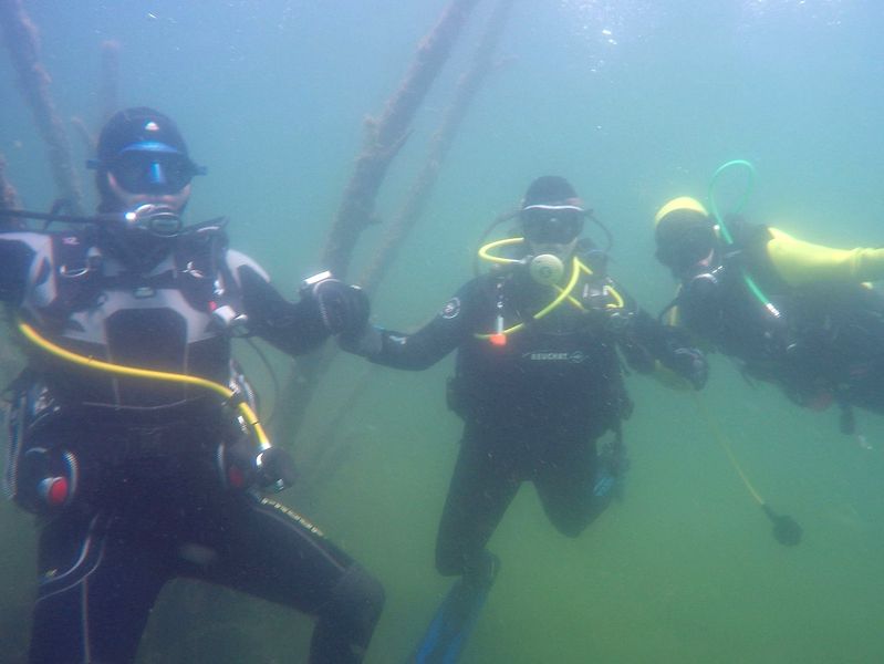 Wir haben uns also in kleine Gruppen aufgeteilt und sind abgetaucht. Es gab aber trotzdem einiges zu sehen, nämlich Flussbarsche, Sonnenbarsche, kleine Hechte, Schwarzmund- Grundeln, jede Menge Fischnachwuchs, blitzschnelle Krebse und etliche Taucher. Das war vor allem für unseren Neutaucher Andi ein Erlebnis, da er bei den letzten Tauchgängen immer noch Prüfungen abzulegen hatte und jetzt zum ersten Mal das Tauchen einfach mal genießen konnte 🙂