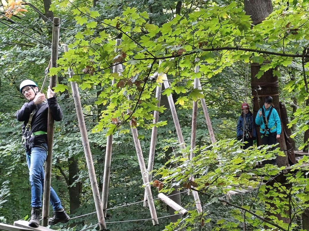unser Team-Building-Ausflug in die luftigen Höhen des Kletterwaldes Neroberg. Bei noch frischen Temperaturen machten wir uns gemeinsam auf den Weg – die Luft war klar, die Blätter bunt, und die Vorfreude auf das gemeinsame Abenteuer groß. Wie gerne hätten wir unsere 7mm Neopren-Anzüge gegen die morgendliche Kühle dabei gehabt…